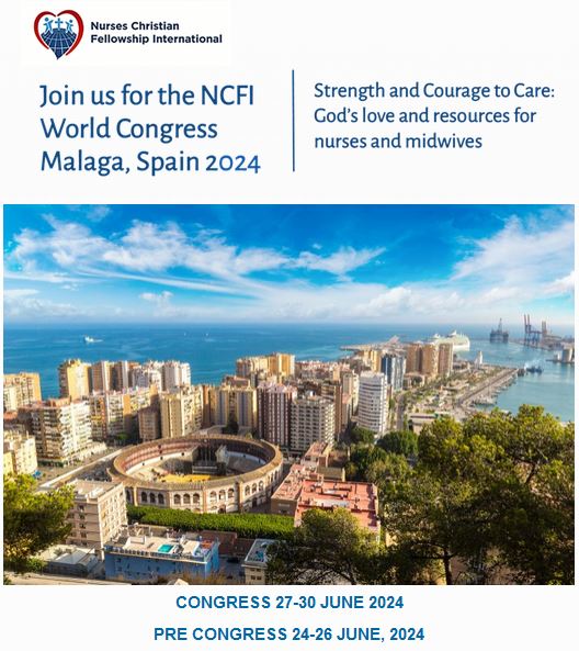 Especial énfasis en comunicaros el Congreso Mundial de la Comunidad Inernacional de Enfermeras Cristianas (NCFI) que se celebrará este próximo año en Málaga (España), con un precongreso del 24 al 26 de junio y el congreso propiamente dicho del 27 al 30 de junio.
