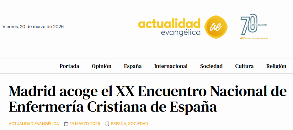 Actualidad Evangélica, el órgano de información y comunicaciones de la FEREDE, publica una noticia sobre la futuera realización del XX Encuentro Nacional del grupo de Enfermeras Cristianas de España.