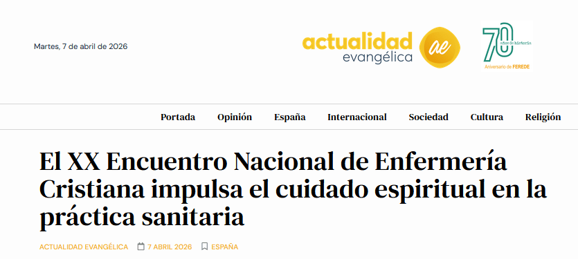 Actualidad Evangélica, el órgano de informaciones de la FEREDE, publica hoy una noticia en relación al pasado Encuentro Nacional de Enfermería Cristiana de España.